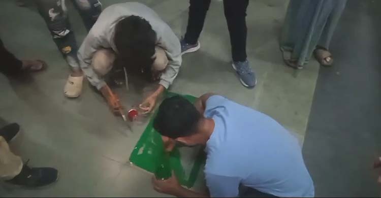 অভিযোগ উঠেছে, বুধবার (৪ ডিসেম্বর) রাতে বারাসাত রেলওয়ে স্টেশনে যাত্রী চলাচলের স্থানে বাংলাদেশের পতাকা এঁকে তার ওপর দাঁড়িয়ে অবমাননা করেন বজরং দলের কয়েকজন সদস্য।