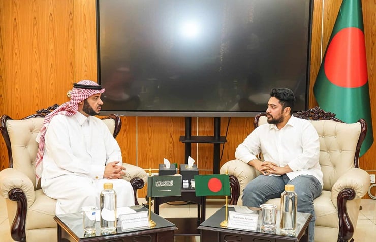 বুধবার সচিবালয়ে ডাক ও টেলিযোগাযোগ বিভাগের অফিস কক্ষে বাংলাদেশে নিযুক্ত সৌদি আরবের রাষ্ট্রদূত ইসা ইউসুফ ইসা আল দুহাইলান সাক্ষাৎ করতে এলে উপদেষ্টা এ আহ্বান জানান।