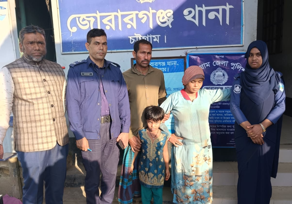 মোহাম্মদ মাসুদুজ্জামান রাজিব,স্টাফ রিপোর্টার : চট্টগ্রামের মীরসরাইয়ের জোরারগঞ্জ থানা পুলিশের মানবিক সহযোগিতায় নিখোঁজ হওয়া ৪৫ বছর বয়সী মানসিক ভারসাম্যহীন প্রভা রানী দাস নামের এক নারী ও তাঁর ৮ বছর বয়সী মেয়ে সুক্তা দাস’কে পরিবারের নিকট হস্তান্তর করে পুলিশ।