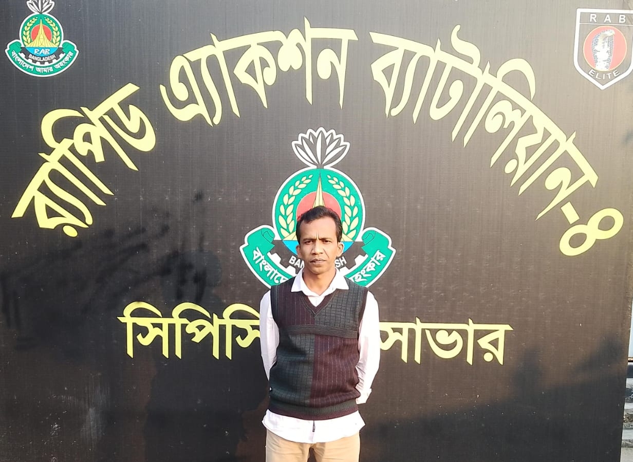 সোমবার গণমাধ্যমে পাঠানো এক প্রেস বিজ্ঞপ্তিতে এ তথ্য নিশ্চিত করেন র্যাব-৭ এর সহকারি পরিচালক (মিডিয়া) এআরএম মোজাফফর হোসেন। তিনি জানান, গোপন সংবাদের ভিত্তিতে র্যাব জানতে পারে যে, ফেনীর পরশুরাম থানার অস্ত্র আইনে করা এক মামলার পলাতক আসামি ঢাকা জেলার সাভার মডেল থানার রাজাবাড়ি এলাকায় অবস্থান করছে। এমন তথ্যের ভিত্তিতে র্যাব-৭ ও র্যাব-৪, মিরপুরের যৌথ আভিযানিক দল রবিবার বিকালে ওই এলাকায় অভিযান পরিচালনা করে আসামি মোঃ হেলাল উদ্দিন তসলিম’কে (৪৪) গ্রেফতার করে হেফাজতে নেয় র্যাব।