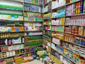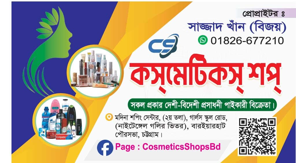 এখানে সকল প্রকার দেশী-বিদেশী প্রসাধনী প্রাইকারীতে পাওয়া যায়।