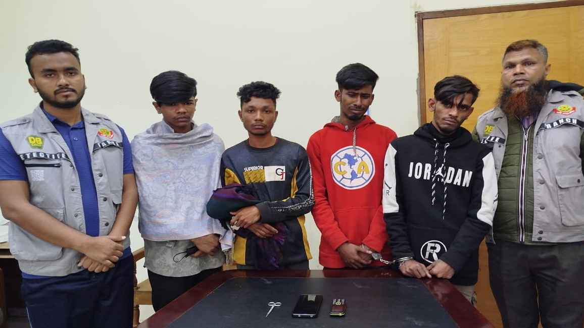 পুলিশের উপস্থিতি বুঝতে পেরে পালানোর সময় ছিনতাইকারী চক্রের রাকিব, রাহাত, আরিয়ান ও তানভীরকে গ্রেফতার করা হয়।