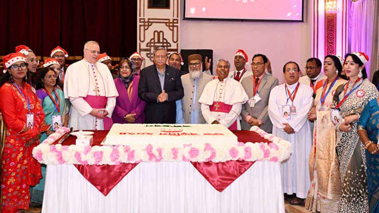রাষ্ট্রপতি যিশুখ্রিষ্টের জন্মদিন উপলক্ষে শুভ বড়দিনের একটি কেক কাটেন।