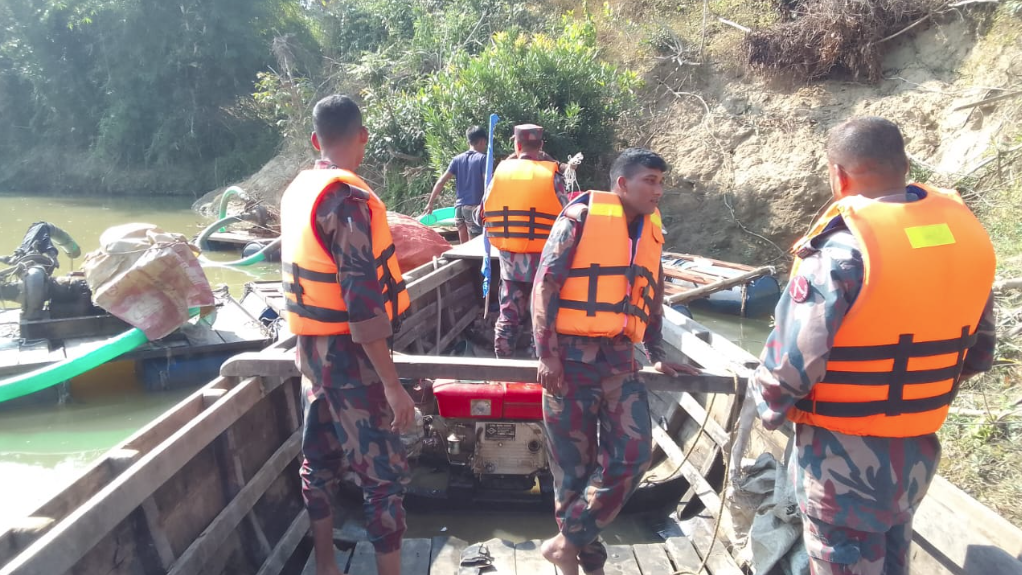 সংবাদ বিজ্ঞপ্তিতে জানানো হয়, শনিবার দুপুরে বিজিবি ফেনী ব্যাটালিয়নের অলিনগর বিওপির দায়িত্বপূর্ণ এলাকার সীমান্ত পিলার ২২০২/০৬-আরবি-এর নিকট শূন্য লাইন হতে আনুমানিক ৫০ গজ বাংলাদেশের অভ্যন্তরে জেলার ছাগলনাইয়ার ফেনী নদী থেকে অবৈধভাবে বালু উত্তোলনের বিরুদ্ধে অভিযান পরিচালনা করা হয়। অভিযানে অবৈধভাবে বালু উত্তোলনের অভিযোগে পাঁচটি মেশিন ও বিভিন্ন সরঞ্জামাদি জব্দ করা হয়েছে।