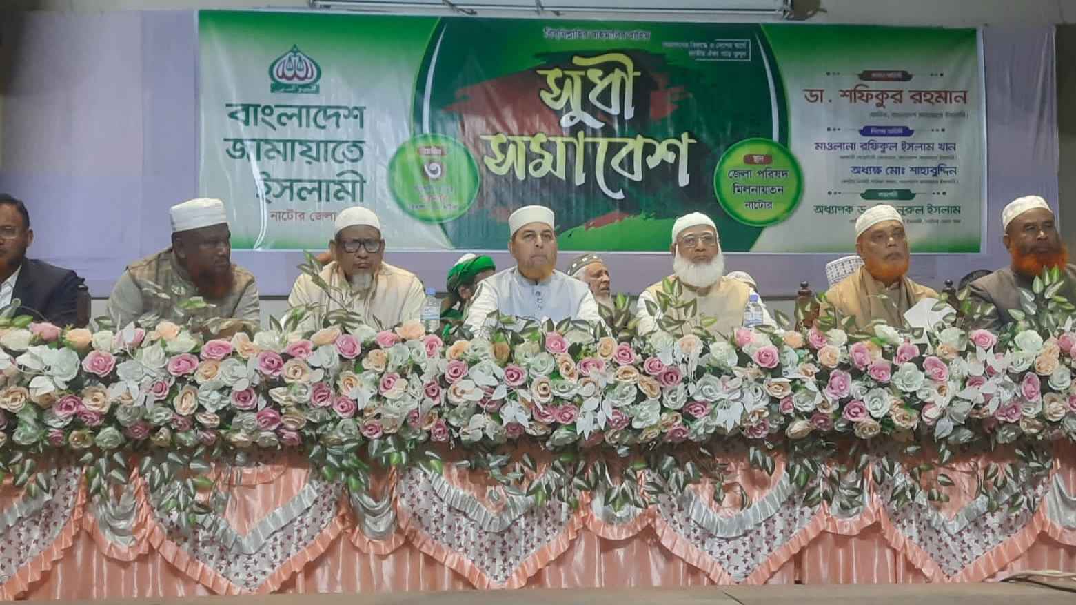 সমাবেশে জামায়াতে ইসলামীর নাটোর জেলার আমির অধ্যাপক ডা. মীর নুরুল ইসলামের সভাপতিত্বে আরও বক্তব্য দেন- বাংলাদেশ জামায়াতে ইসলামীর কেন্দ্রীয় সহকারী সেক্রেটারি জেনারেল মাওলানা রফিকুল ইসলাম খান, কেন্দ্রীয় নির্বাহী পরিষদের সদস্য অধ্যক্ষ মো. শাহাবুদ্দিন, নাটোর জেলা জামায়াতের নায়েবে আমীর অধ্যাপক মো. ইউনুস আলী, জেলা জামায়াতের প্রচার সম্পাদক আতিকুল রহমান রাসেল প্রমুখ।