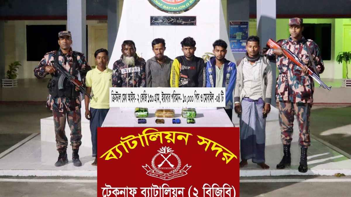 কক্সবাজারের টেকনাফে ২ কেজি ১৩০ গ্রাম ক্রিস্টাল মেথ আইস, ১০ হাজার ইয়াবাসহ ৬ পাচারকারীকে আটক করেছে বর্ডার গার্ড বাংলাদেশ (বিজিবি)।