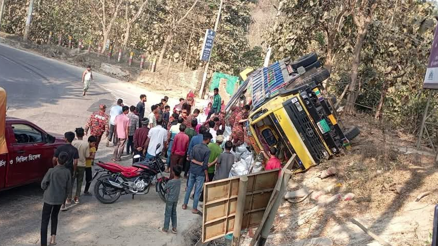 পুলিশ ও স্থানীয়রা জানান, সকালে জামালপুর থেকে চিনি বহনকারী একটি ট্রাক বান্দরবান যাওয়ার পথে বান্দরবান-কেরানিহাট সড়কের মানুরটেক নামক স্থানে পৌঁছালে নিয়ন্ত্রণ হারিয়ে গাড়িটি উল্টে গিয়ে দুর্ঘটনায় পড়ে। এ সময় ট্রাকটির নিচে চাপা পড়েন শামসুল মিয়া। পরে পুলিশ, ফায়ার সার্ভিস ও স্থানীয়দের সহায়তায় তাকে বান্দরবান হাসপাতালে ভর্তি করালে চিকিৎসক মৃত ঘোষণা করেন। অপরদিকে সড়কটির সুয়ালক ইউনিয়নের বান্দরবান বিশ্ববিদ্যালয় গেইট এলাকায় সিমেন্টবোঝাই একটি ট্রাক নিয়ন্ত্রণ হারিয়ে সড়কের ওপর উল্টে যায়। এ সময় বিপরীতগামী একটি মটরসাইকেলের সঙ্গে ধাক্কা লেগে গুরুতর আহত হন মোটরসাইকেল আরোহী হোসেন মিয়াসহ আরও দু’জন। পরে তাদের উদ্ধার করে হাসপাতালে নিয়ে গেলে তাকেও মৃত ঘোষণা করেন চিকিৎসক।