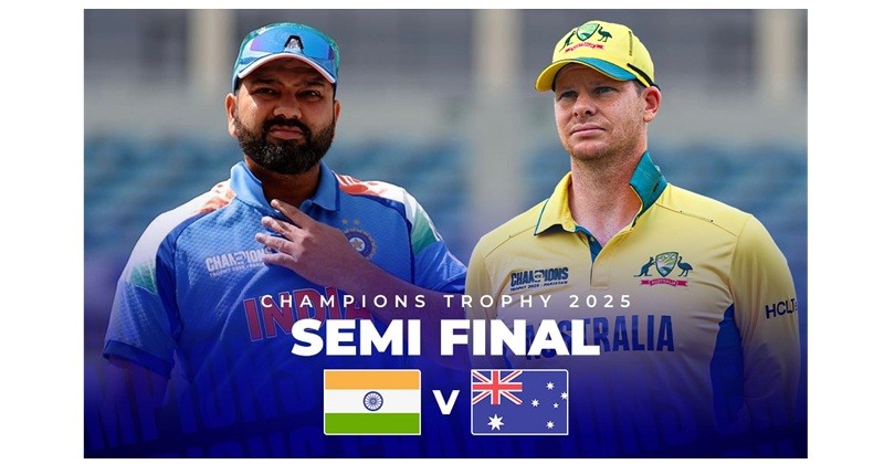 আইসিসি চ্যাম্পিয়নস ট্রফির প্রথম সেমিফাইনালে মুখোমুখি ভারত–অস্ট্রেলিয়া।
