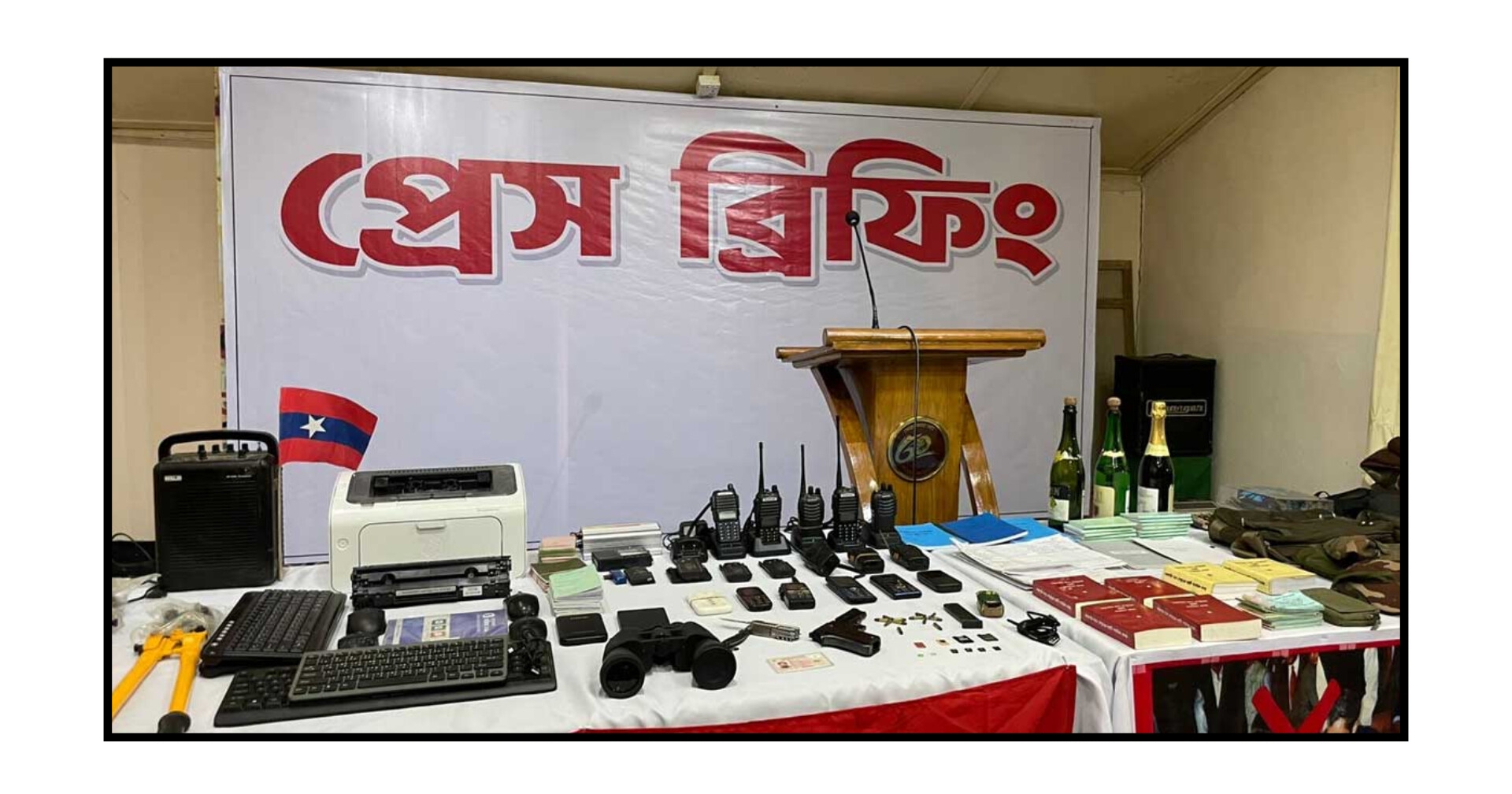 তিনি বলেন, ‘পরবর্তীতে তল্লাাশি চালিয়ে ওই আস্তানা থেকে সশস্ত্র সন্ত্রাসীদের ব্যবহৃত একটি পিস্তল, ১৭ রাউন্ড পিস্তলের গুলি, একটি করে বাইনোকুলার, ওয়াকিটকি সেট ও হার্ডডিস্ক এবং সন্ত্রাসীদের ইউনিফর্ম ও চাঁদা আদায়ের রশিদসহ বিভিন্ন সরঞ্জাম উদ্ধার করা হয়।’