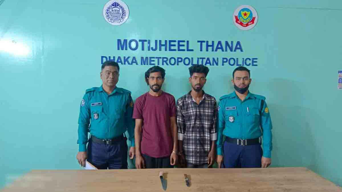 মতিঝিল থানা সূত্রে জানা গেছে, শুক্রবার রাত তিনটার দিকে থানার টহল টিম এজিবি কলোনির আল হেলাল বায়তুল আমান জামে মসজিদের সামনে ফাঁকা মাঠে পৌঁছায়। পুলিশের উপস্থিতি টের পেয়ে পালানোর সময় রমজান ও রাজু নামে দুইজনকে আটক করা হয়। এ সময় তাদের কাছ থেকে একটি ছুরি ও একটি চাকু উদ্ধার করা হয়।