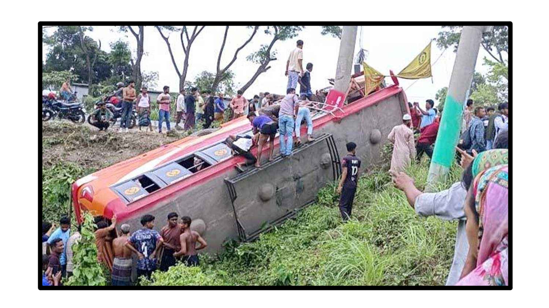ফরিদপুর ফায়ার সার্ভিসের সিনিয়র স্টেশন অফিসার মো. নজরুল ইসলাম পাঁচজনের মৃত্যুর খবর নিশ্চিত করে জানান, মাদারীপুরের টেকেরহাট থেকে ছেড়ে আসা ফরিদপুরগামী হাইডেক্স নামের একটি বাস নিয়ন্ত্রণ হারিয়ে একটি বিদ্যুতের খুঁটির সঙ্গে ধাক্কা খেয়ে রাস্তার পাশে খাদে পড়ে যায়। ফায়ার সার্ভিস ও স্থানীয়রা উদ্ধারকাজ চালাচ্ছে।