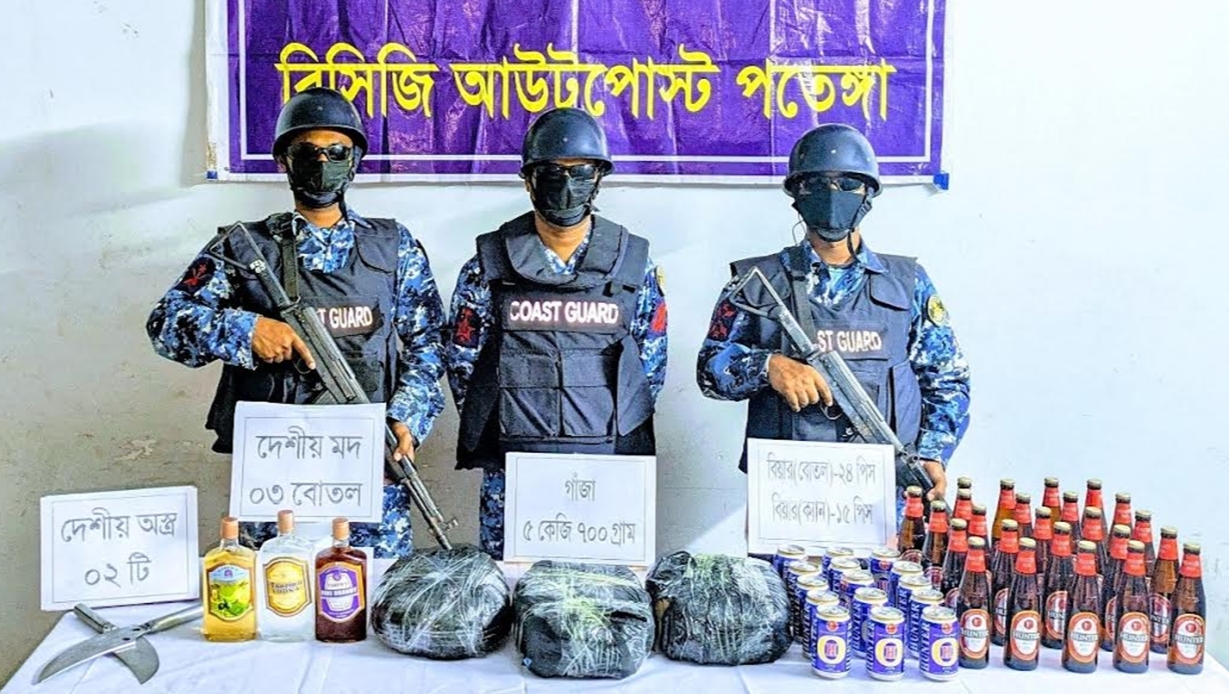চট্টগ্রাম থেকে বিপুল পরিমাণ মাদক এবং দুটি দেশীয় অস্ত্র উদ্ধার করেছে কোস্টগার্ড।