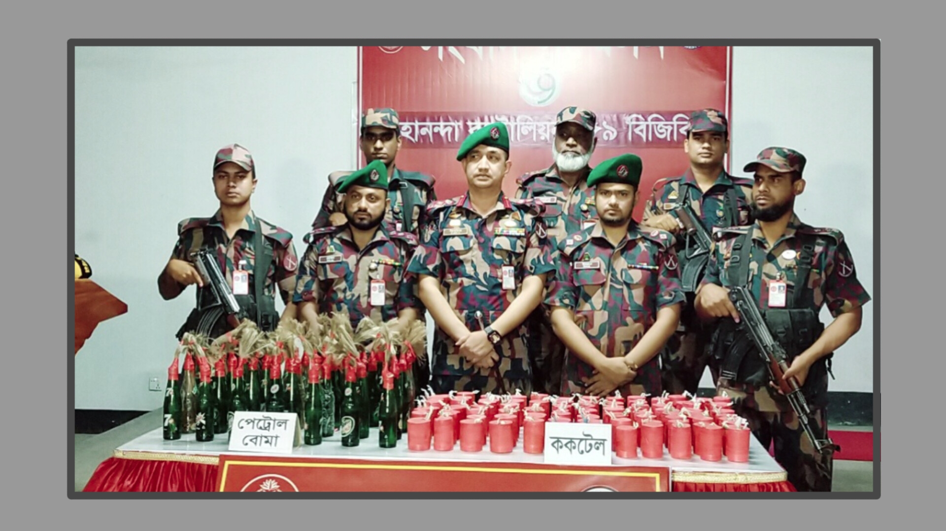 চাঁপাইনবাবগঞ্জের শিবগঞ্জ উপজেলার চকপাড়া সীমান্ত এলাকা থেকে ৯৯টি তাজা ককটেল ও ৪০টি পেট্রোলবোমা উদ্ধার করেছে মহানন্দা ব্যাটালিয়ন: ৫৯ বিজিবির সদস্যরা।