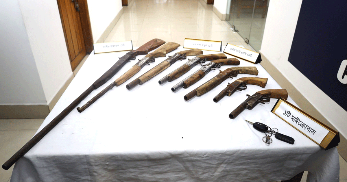 বাঁশবাড়িয়া বাজারে চেকপোস্টে পুলিশ তাদের গাড়ি থামানোর সংকেত দিলে চালক পালানোর চেষ্টা করেন। পরে গোয়েন্দা সদস্যরা ধাওয়া করে গাড়িটি আটক করেন। তল্লাশিতে গাড়ির বিভিন্ন অংশে লুকানো ছয়টি ওয়ান শ্যুটার গান, একটি দেশিয় রাইফেল এবং একটি একনলা বন্দুক উদ্ধার করা হয়।