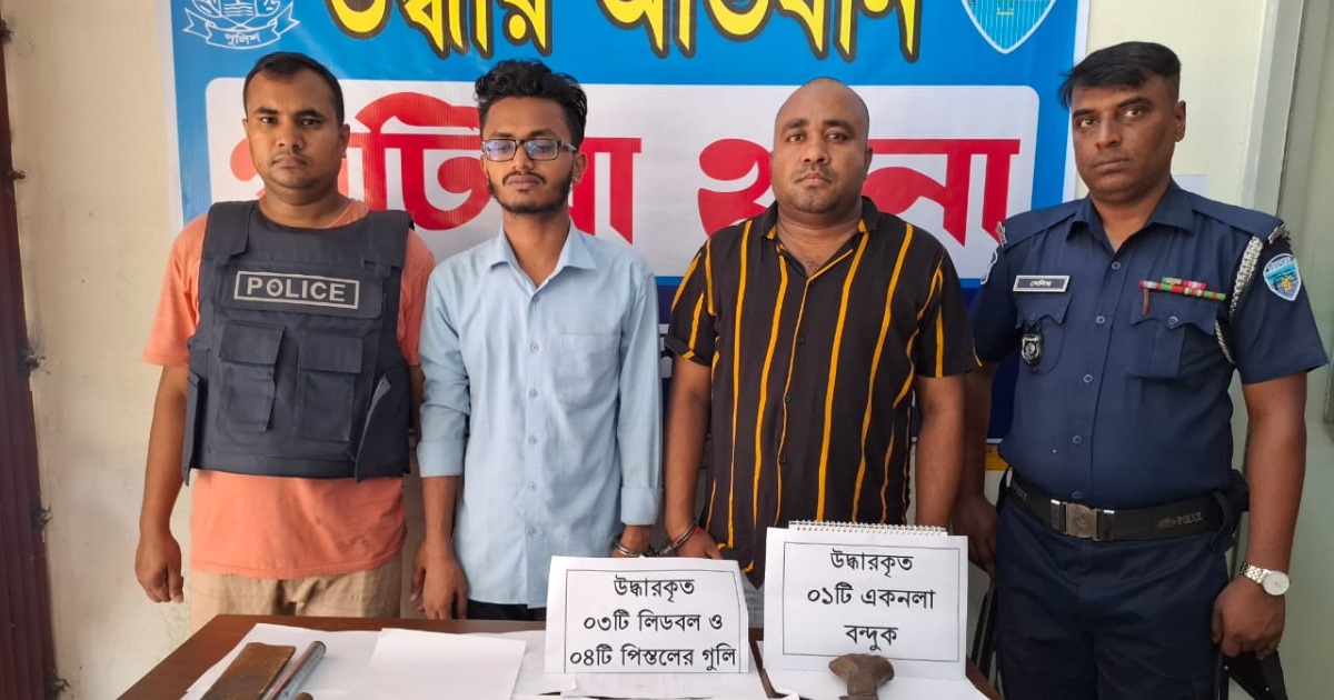 পুলিশের দাবি, তাদের কাছ থেকে অস্ত্র ও গুলি উদ্ধার করা হয়েছে।