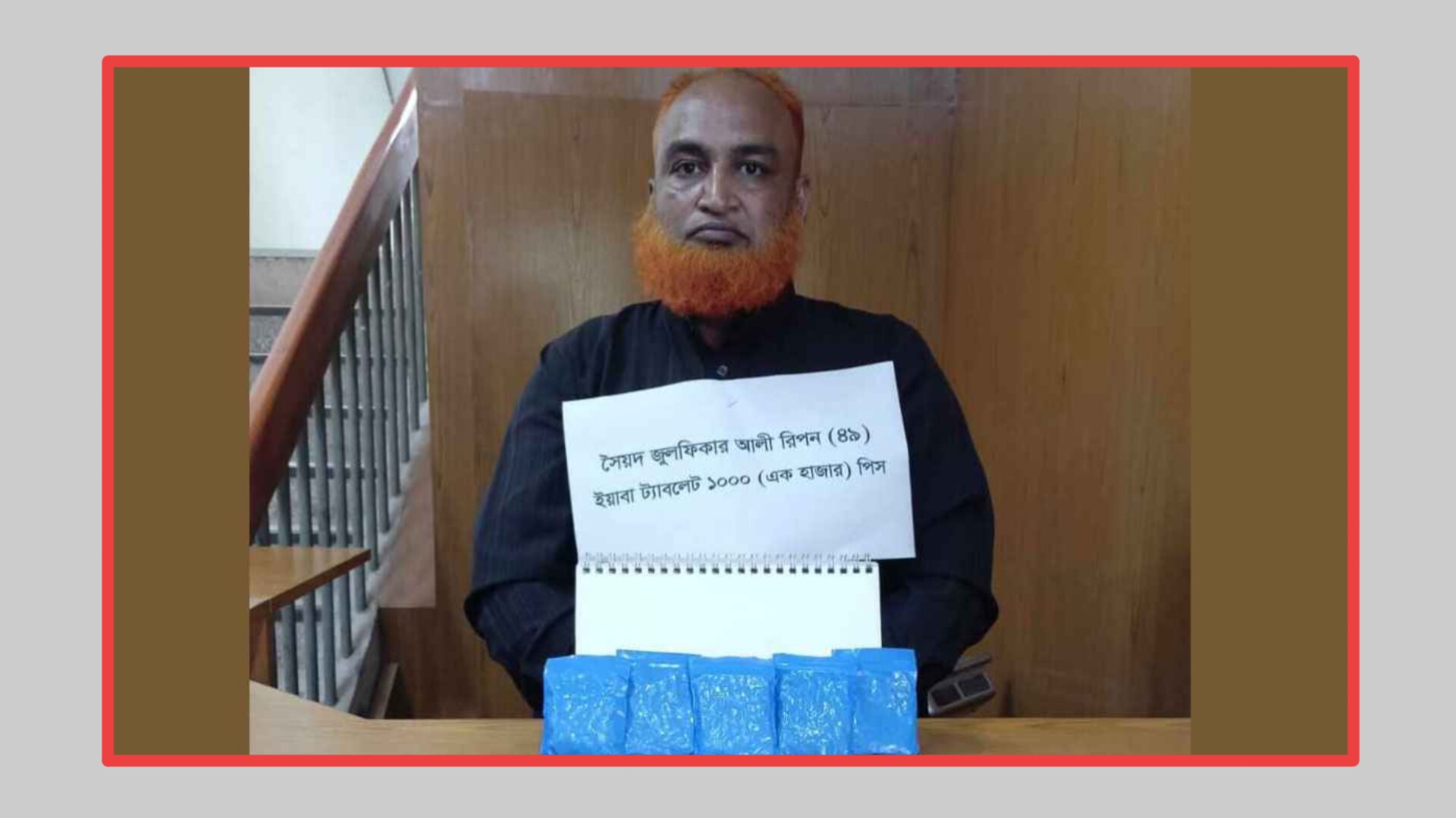 খুলনা-ঢাকা মহাসড়কের খুলনার রূপসা থানাধীন যাবুসা টোল প্লাজার পূর্ব পাশে ইমাদ পরিবহনের একটি বাসে তল্লাশি চালিয়ে ১ হাজার পিস ইয়াবাসহ সৈয়দ জুলফিকার আলী রিপন (৪৯) নামের এক ব্যক্তিকে গ্রেপ্তার করা হয়েছে।