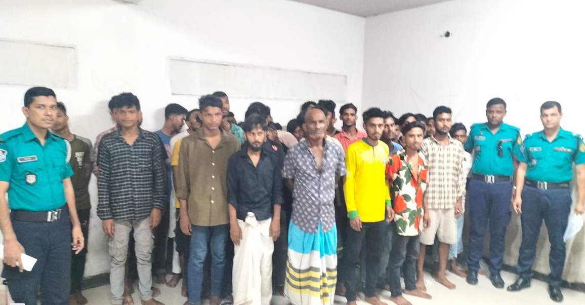 গ্রেপ্তার আসামীরা হলেন- শাহিন (২১), শ্রীনাথ মন্ডল (২৫), আসাদ (৫৫), কুরবান (২৬), সাকিব (২২), সজিব (১৯), পারভেজ  (২০), মোশাররফ (২৫), রুবেল (২৭), রিয়াজ (১৮), শাহীন (২৮), ইমন (২৫), রকি (২২), রাজা (৩৮), তুষার (২৫), সজল (২৮), হেলাল (৩৭), হৃদয় (২১), মুরসালিন (২০), মামুন (২০), সাফায়েত (২০),  শুভ (১৯),  সালমান (১৮), মাজহারুল (১৮), রাব্বি (১৮), আফজাল (১৯), ইয়াসিন (১৯), জহিরুল (১৯), বাবু (১৯), রুমান (২১), জহিরুল (১৮), সুমন (৩০), সোহেল (১৮), এমদাদুল (২৫),  সাগর (২২), শাকিব (২০), উজ্জ্বল (৩১), আকরাম (২০), জিসান (২৩), জিল্লুর (২৩), হৃদয়  (৩১), শাকিব (২২), রিয়াজ (২৮) ও  সোহাগ (২৮)।