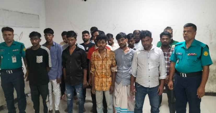 গ্রেফতাররা হলেন- ফরিদ উদ্দিন বাবু (৫৭), রাকিব (৩২), যুবরাজ (৫৫), লিটন (৩৫), রাজু (৩৫), আলম (৪২), সালাম (৩৯), সোহেল (৪০), শাকিল (২৪), আল আমিন (২৩), মিঠু (২৮), জসিম (২৪), রনি (২১), আল আমিন (৩০), নকিব (২৬), মুনসুর (৬০), সুমন বিরিয়ানি সুমন (৩০) ও সাফায়েত (২৩)। তাদের সকলকে আদালতে পাঠানো হয়েছে।