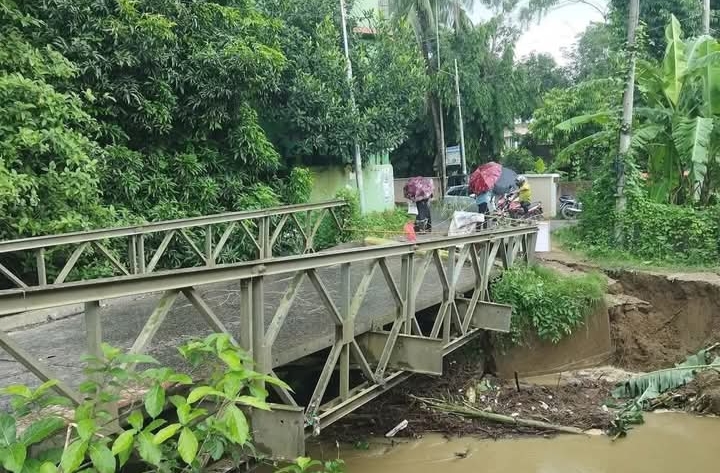 গত ৬জুন ভারি বৃষ্টি হলে পুরাতন ব্রিজটির বেইজ ধসে পড়লে বেইলি ব্রিজের ওপর পুরোপুরি চাপ পড়ে।
