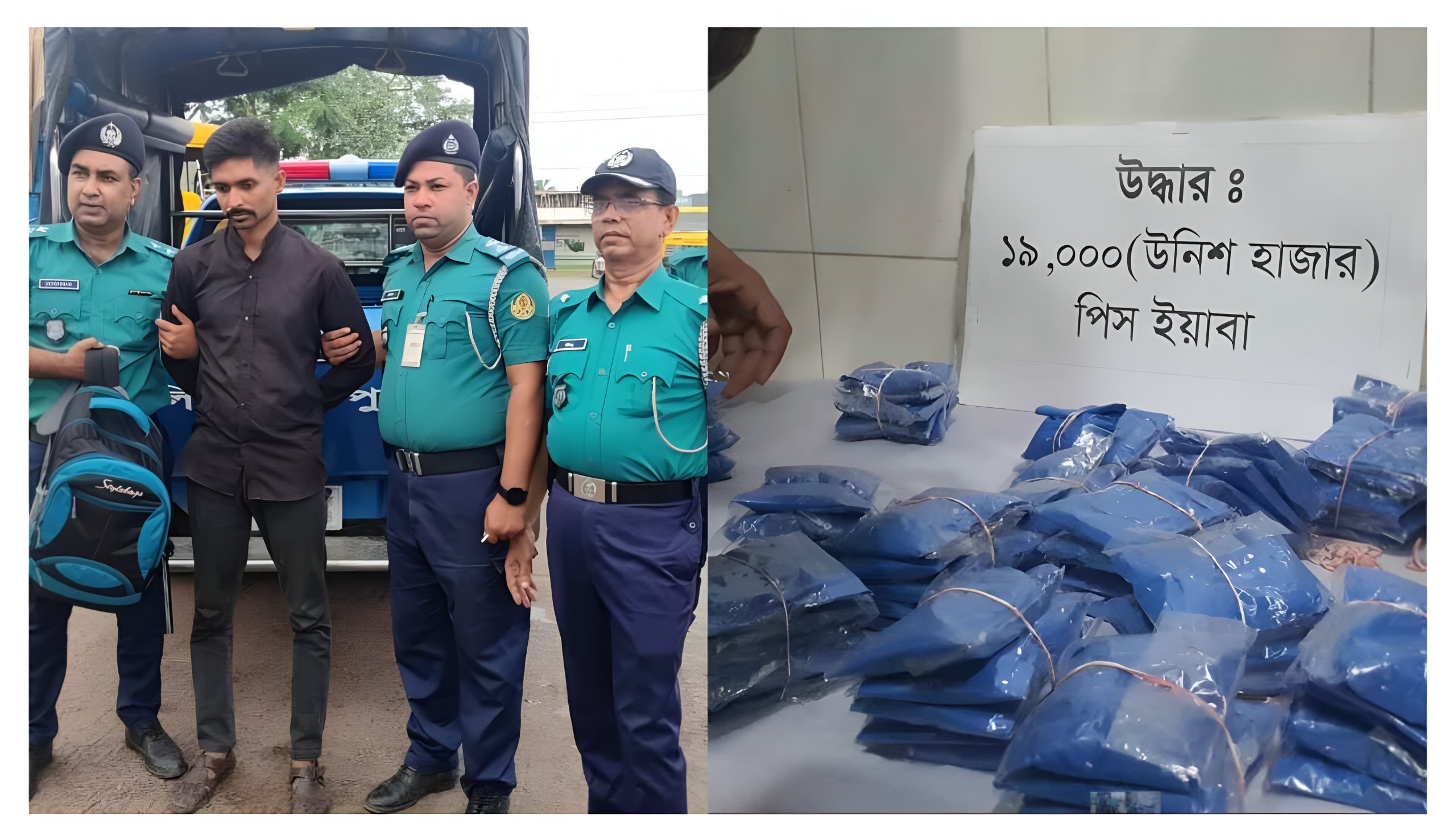 এসময়ে তার গতিরোধ করলে তিনি ভয় পেয়ে যান। আটক আসামির কাছ থাকা একটি ব্যাগ তল্লাশি করে ১৯ হাজার পিস ইয়াবা উদ্ধার করা হয়। পুলিশ হেফাজতে নিয়ে জিজ্ঞাসাবাদ করা হচ্ছে।