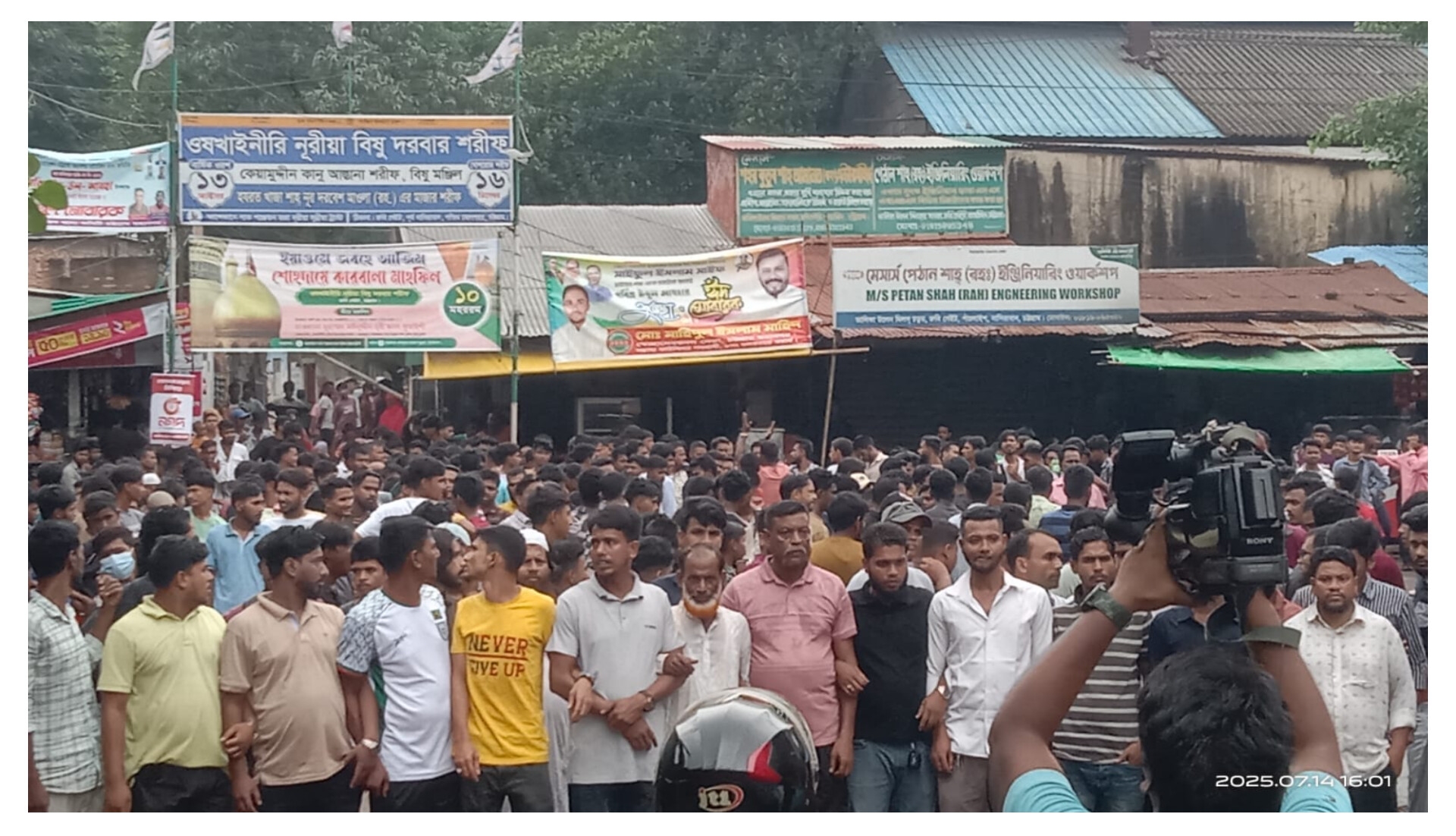 সারাদেশে আইনশৃঙ্খলা পরিস্থিতির অবনতি, গুপ্ত সংগঠন কর্তৃক মব সৃষ্টির অপচেষ্টা, জিয়াউর রহমানের ছবি অবমাননা এবং বিএনপির ভারপ্রাপ্ত চেয়ারম্যান তারেক রহমানকে নিয়ে কুরুচিপূর্ণ বক্তব্যের প্রতিবাদে যুবদল নেতা মো: মাসুদ এর নেতৃত্বে ৪৩নং আমিন শিল্পাঅঞ্চল সাংগঠনিক ওয়ার্ডের বিক্ষোভ মিছিল ও প্রতিবাদ সমাবেশ অনুষ্ঠিত হয়।