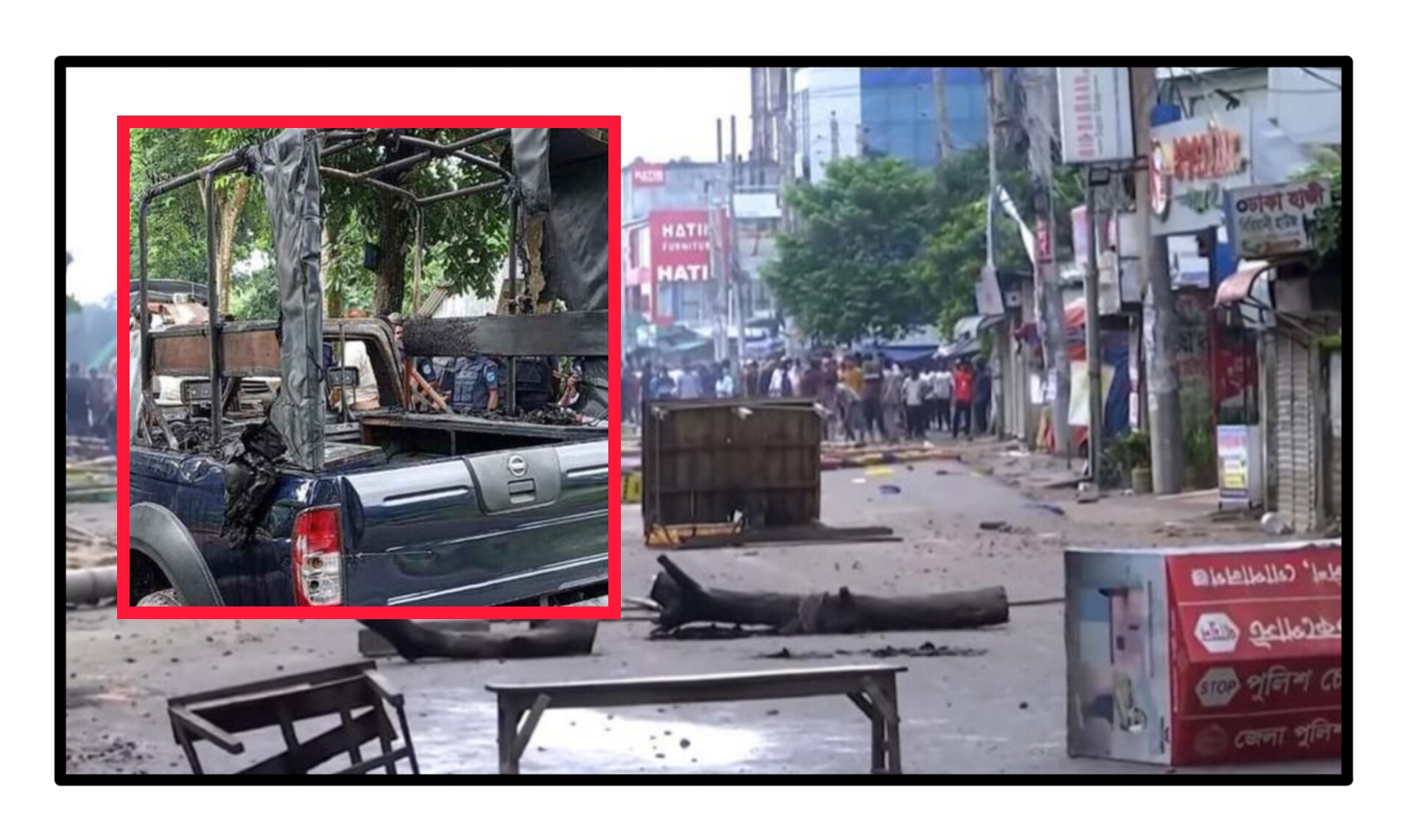 এরপরই পুলিশের সঙ্গে সংঘর্ষে জড়িয়ে পড়ে নিষিদ্ধ ঘোষিত আওয়ামী লীগ ও ছাত্রলীগের নেতাকর্মীরা। তারা পুলিশ সদস্যদের দিকে ইট-পাটকেল ছোড়ে, ভাঙচুর করে পুড়িয়ে দেয় পুলিশের গাড়ি।