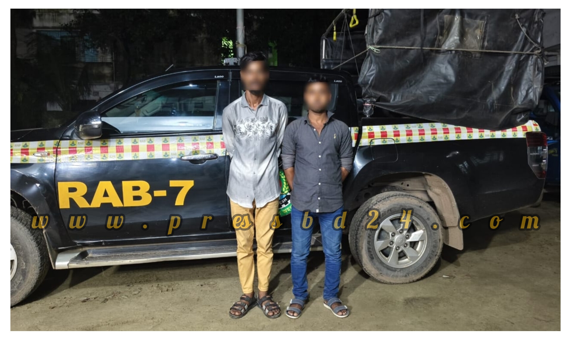 এসময় র‍্যাবের চেকপোস্টের দিকে আসা সন্দেহজনক একটি পিকআপ গাড়ী’কে থামানের সংকেত দিলে গাড়ীটি না থামিয়ে দ্রুত পালিয়ে যাওয়ার সময় সোহাগ ও মনির নামে দু’জনকে আটক করে হেফাজতে নেয় র‍্যাবের আভিযানিক দল।