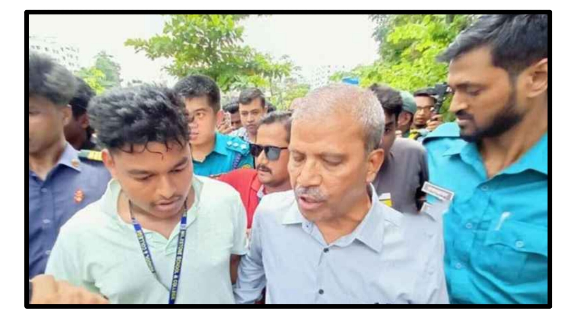 মঙ্গলবার (২২ জুলাই) সকাল সাড়ে ১০টার দিকে কলেজের দুর্ঘটনাকবলিত হায়দার আলী ভবন পরিদর্শন শেষে বের হওয়ার সময় তাদের পথরোধ করেন শিক্ষার্থীরা। বর্তমানে তারা স্কুলের ভেতরে অবস্থান করছেন।