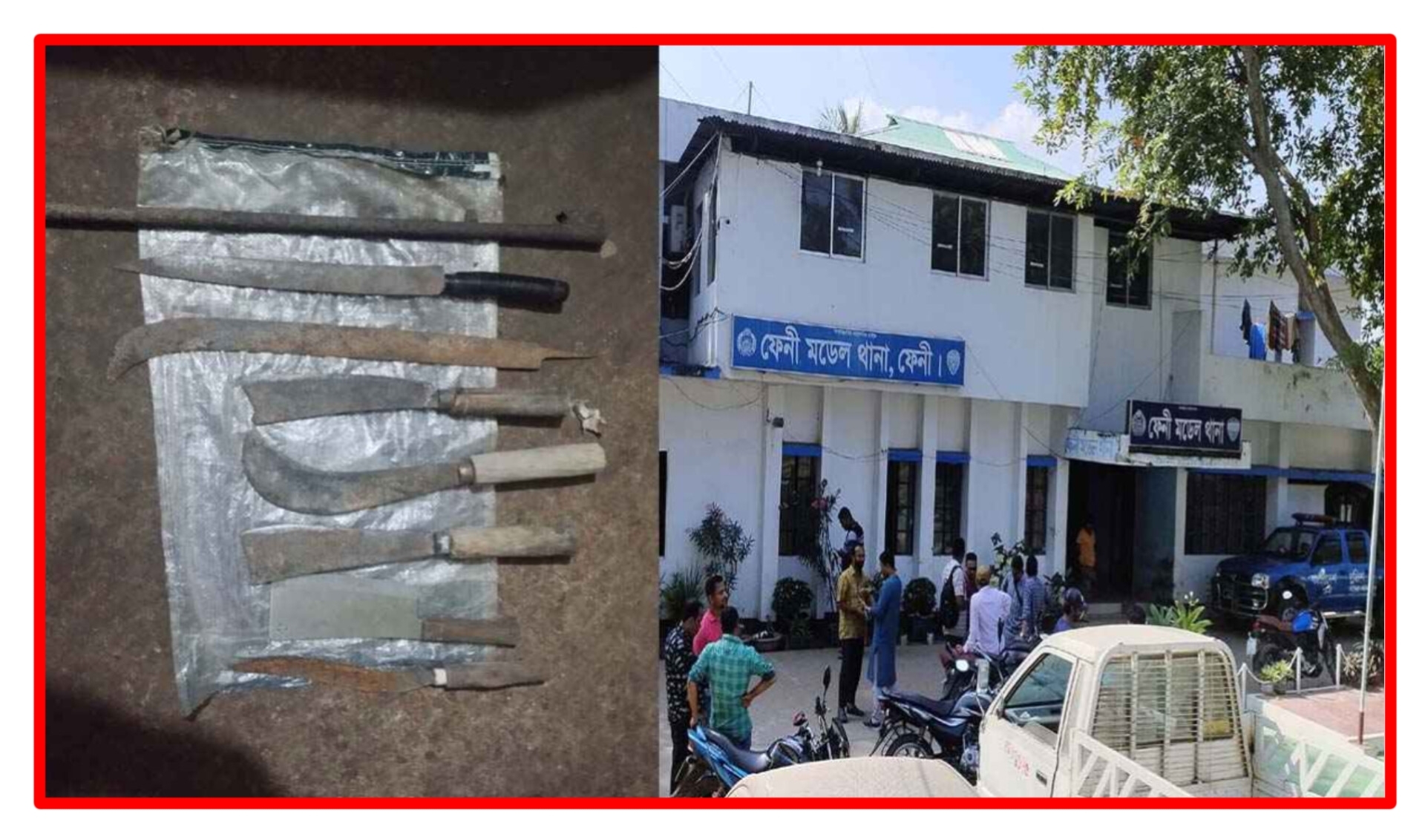 এসময় তাদের কাছ থেকে দেশীয় অস্ত্র উদ্ধার করা হয়েছে। পরবর্তী আইনানুগ ব্যবস্থা গ্রহণের জন্য আটক ব্যক্তিদের ফেনী মডেল থানায় হস্তান্তর করা হয়েছে।
