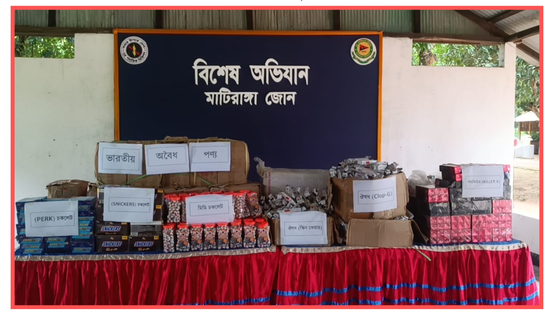 মাটিরাঙ্গা সেনা জোনের অভিযানে বিদেশী চকলেট ও ঔষধ জব্দ