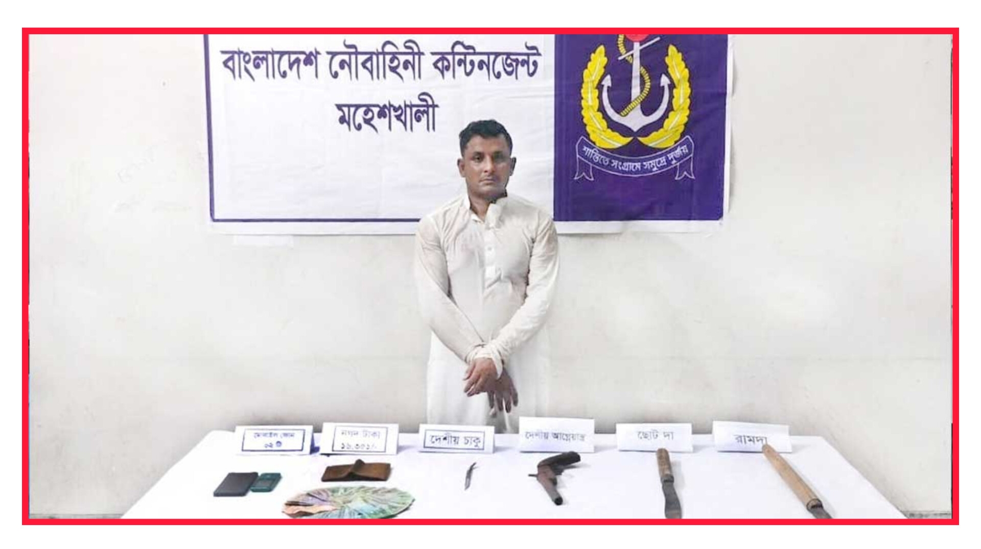 একই রাতে মহেশখালী উপজেলার বড় মহেশখালী ইউনিয়নের দেবেঙ্গা পাড়ায় অভিযান পরিচালনা করে নৌবাহিনী। সেখানে মাদক ও অস্ত্রসহ একাধিক মামলার আসামি ফারুককে নগদ ১৬ হাজার ৩৫১ টাকা এবং দেশীয় ধারালো অস্ত্রসহ আটক করা হয়।
