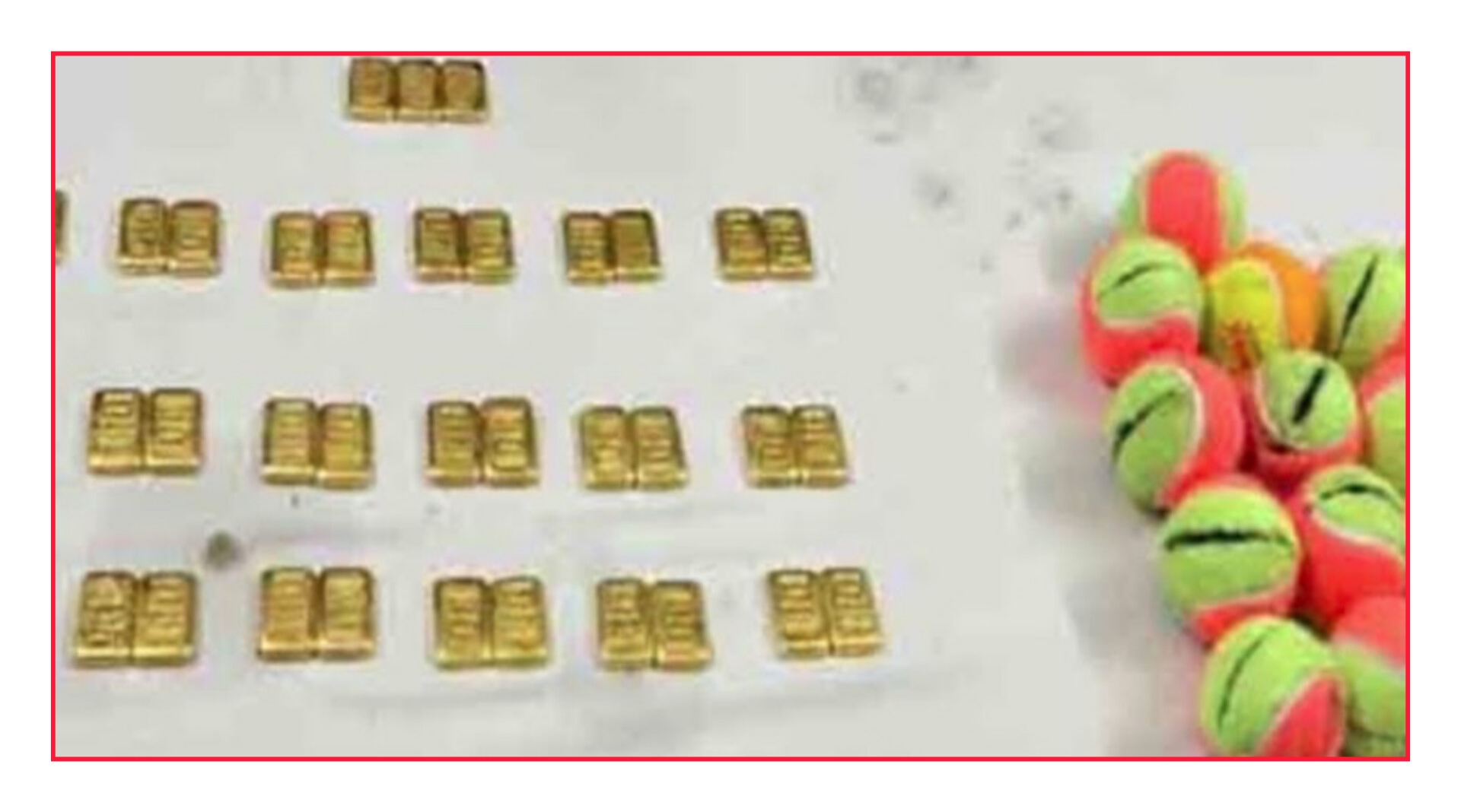 টেনিস বলের ভিতরে সোনার টুকরো লুকিয়ে বাংলাদেশ থেকে ভারতে পাচারের চেষ্টা করা হচ্ছিল।