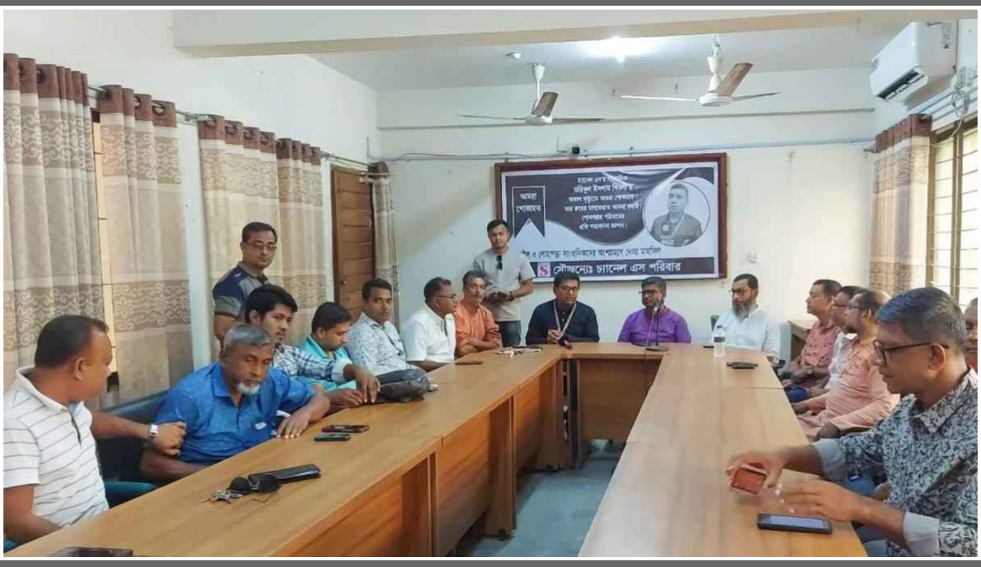 দোয়া মাহফিল এ নড়াইল জেলায় কর্মরত বিভিন্ন প্রিন্ট, ইলেকট্রনিক ও অনলাইন মিডিয়ার সাংবাদিকরা উপস্থিত ছিলেন। সর্বশেষ চ্যানেল এস টেলিভিশন-এর নড়াইল জেলা প্রতিনিধি ওবায়দুর রহমান দোয়া মোনাজাত পরিচালনা করেন। পরে সকলের মাঝে খাবার বিতরণ করা হয়।