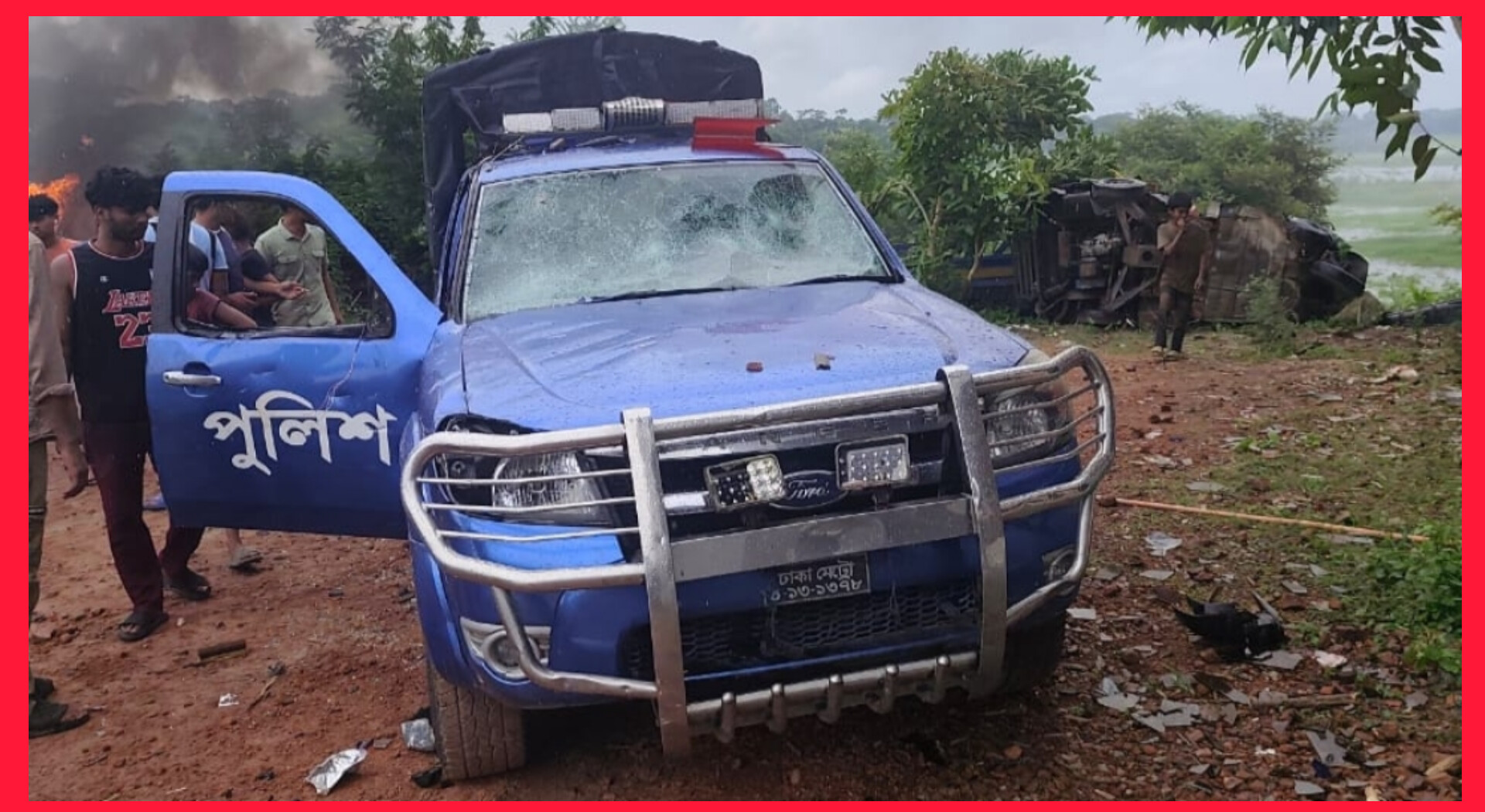 ভাঙ্গা হাইওয়ে থানায় ঢুকে তান্ডব ; ভাঙচুর ১০টি গাড়ি