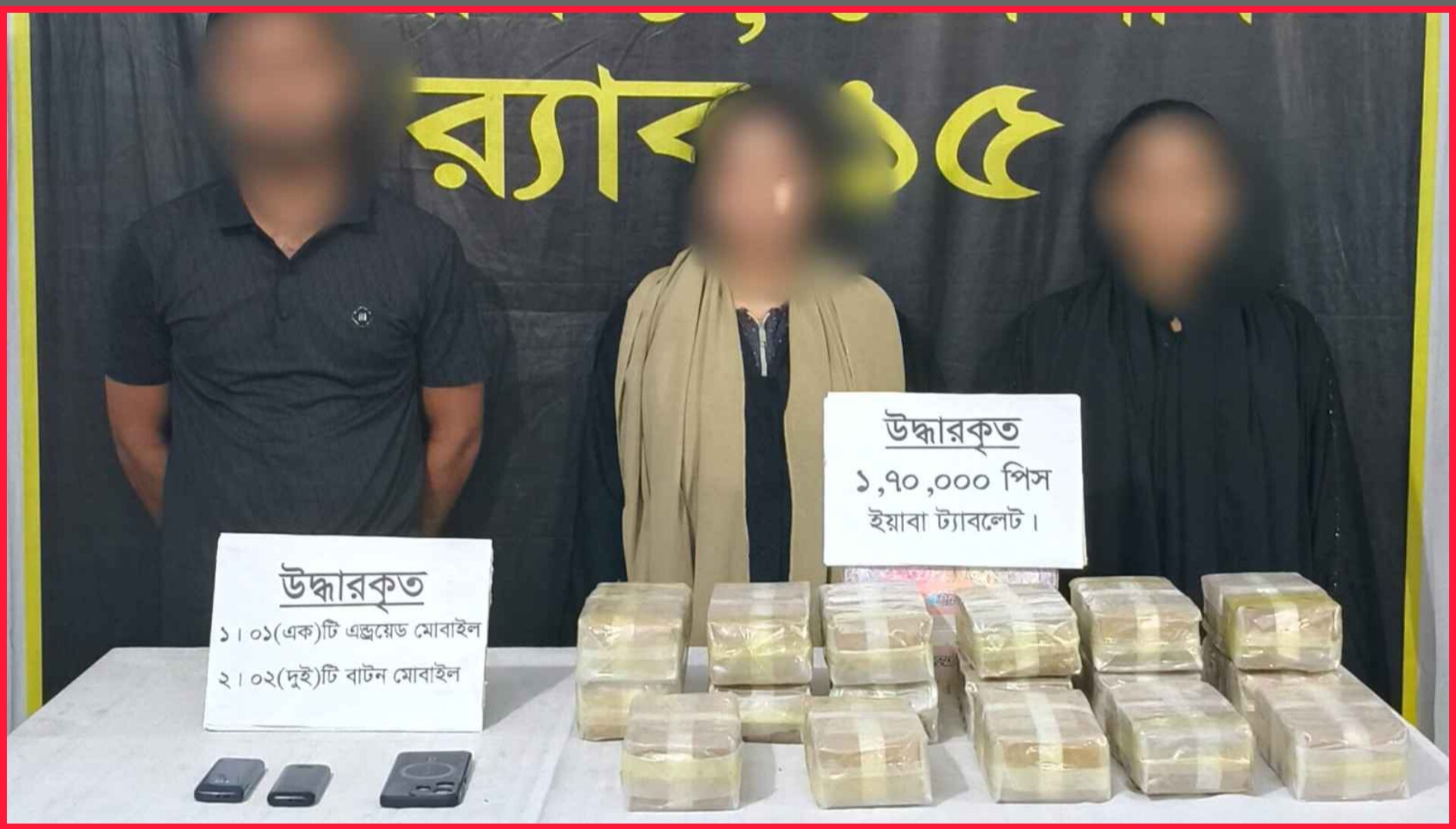 এসময় ইসমত আরা, মো. আবদুর রহিম ও শামীনারা বেগম নামে তিনজন মাদক কারবারিকে ১ লাখ ৭০ হাজার পিস ইয়াবা, ১টি স্মার্টফোন ও ২টি বাটন ফোনসহ হাতেনাতে গ্রেপ্তার করতে সক্ষম হয়।