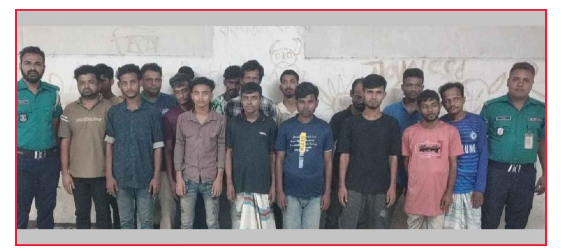 ‎গ্রেফতারকৃত আসামিরা হলেন : রাব্বি, মুরাদ, মোবারক, ওবায়দুল, সালাউদ্দিন, গোলাম রাব্বি, সৈয়দ কায়সার হাবিব, শাওন, জাহাঙ্গীর আলম, রহিম, আবুল হোসেন, মান্নান, আলামিন, আলামিন ইসলাম, সোহেল, মেহেদী হাসান, শফিকুল ইসলাম ও জাহিদ।