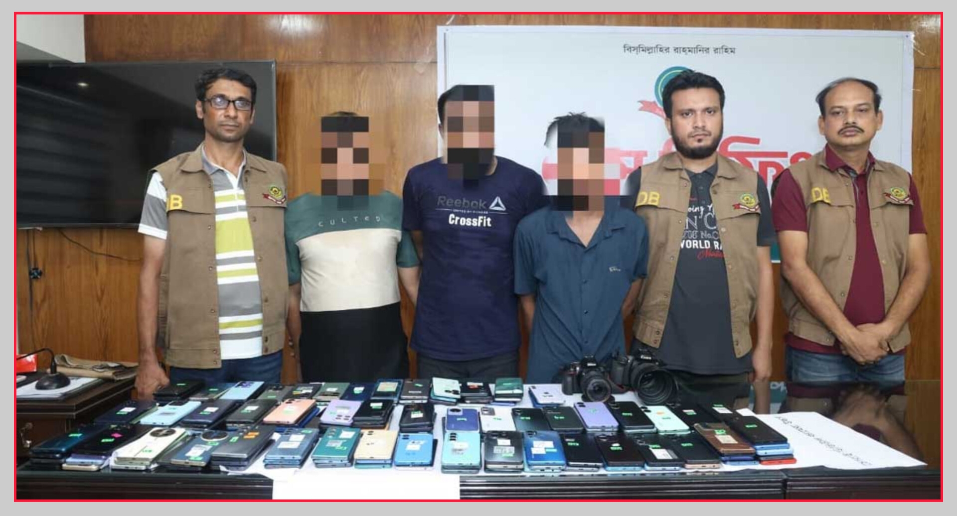 অভিযানে ১৪৮টি চুরি করা মোবাইল ফোন এবং দুটি ডিএসএলআর ক্যামেরা উদ্ধার করা হয়েছে, যার মধ্যে দুটি আইফোনও রয়েছে।