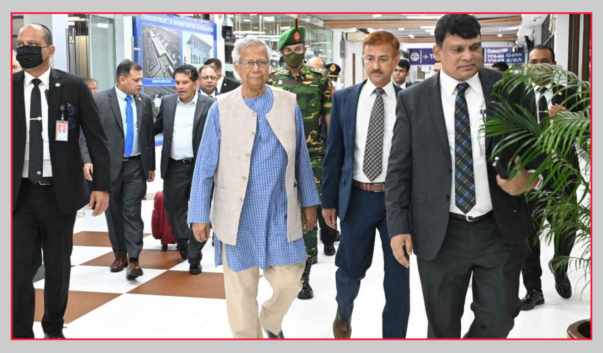 সফরসঙ্গী হিসেবে ছয়জন রাজনৈতিক নেতা প্রধান উপদেষ্টার সঙ্গে রয়েছেন।