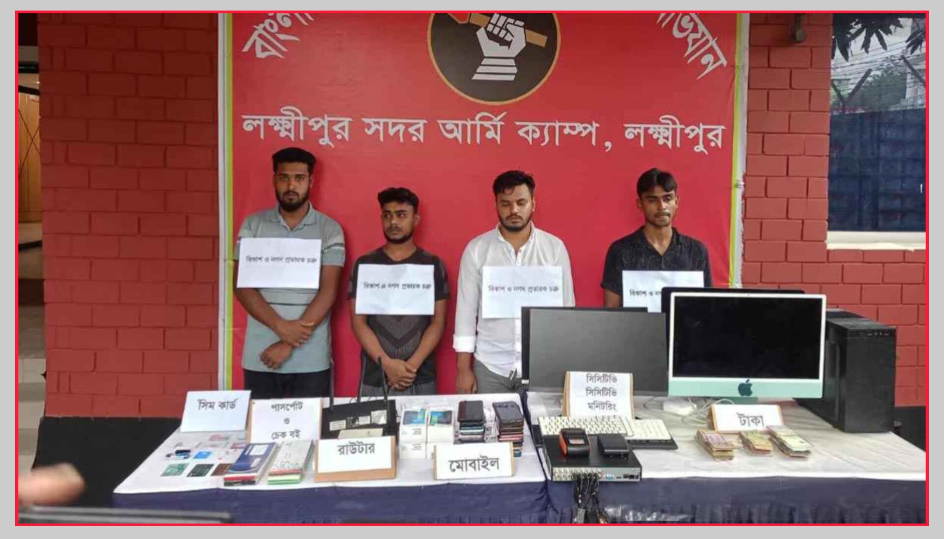 সেনাবাহিনী লক্ষ্মীপুর ক্যাম্প কমান্ডার ক্যাপ্টেন মো. রাহাত খান বলেন, গোপন সংবাদের ভিত্তিতে আমরা অভিযান পরিচালনা করি। এসময় প্রতারক চক্রের ৪ সদস্যকে আটক করা হয়। পরবর্তী আইনানুগ ব্যবস্থা নেওয়ার জন্য তাদের থানায় প্রেরণ করা হয়েছে।