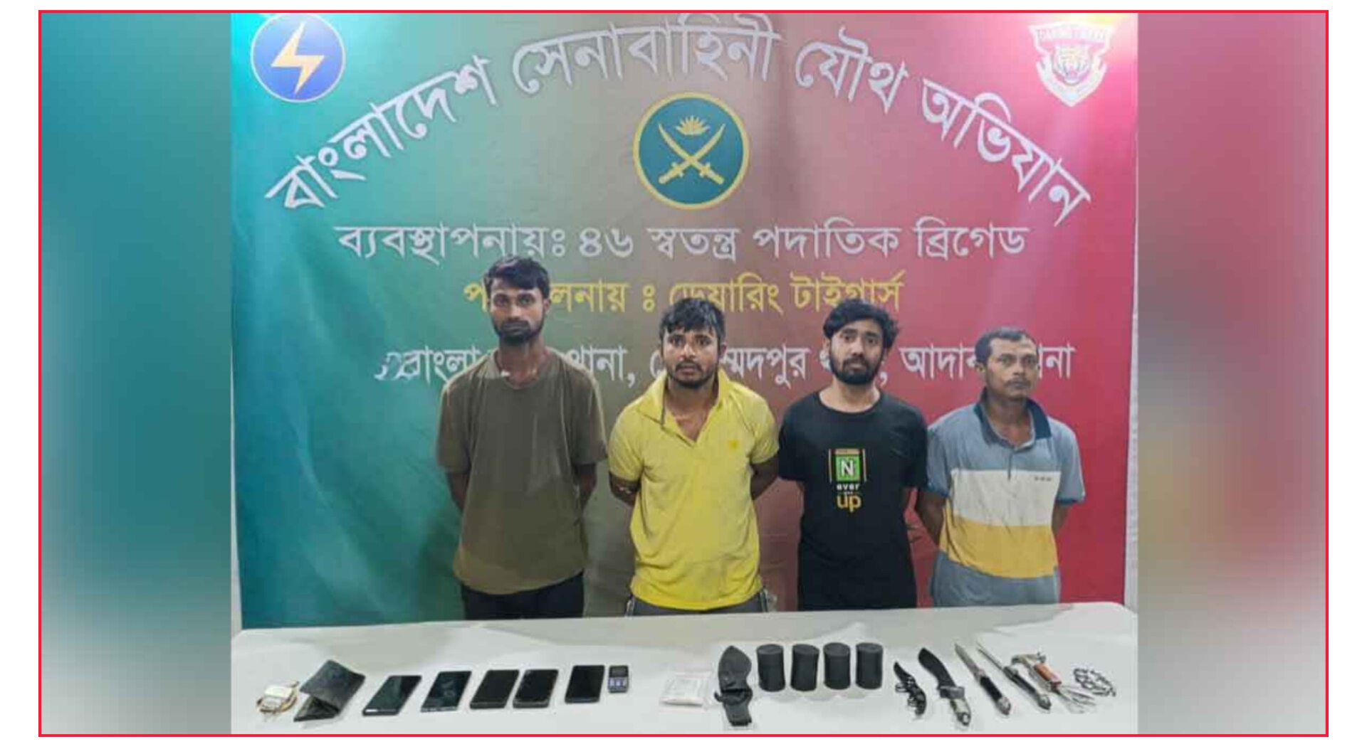 স্টাফ রিপোর্টার : রাজধানীর মোহাম্মদপুরে অভিযান চালিয়ে ভয়ঙ্কর কিশোর গ্যাং গ্রুপ ‘আই ডোন্ট কেয়ার’ এর চার সদস্যকে অভিযান চালিয়ে গ্রেফতার করেছে সেনাবাহিনী।