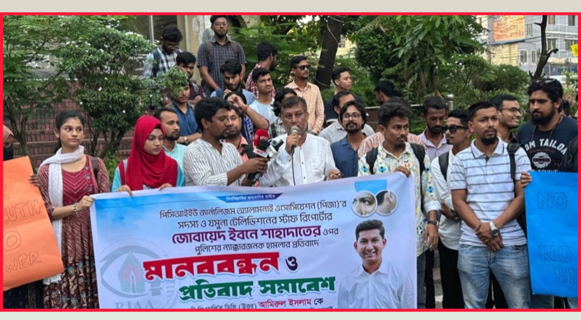 পিজার সিনিয়র সহ-সভাপতি তাপস বড়ুয়া বলেন, ‘সাংবাদিকরা রাষ্ট্রের চতুর্থ স্তম্ভ। তাদের ওপর হয়রানি বা মারধর হলে জনগণের অধিকার কোথায় নিরাপদ থাকবে? যমুনা টেলিভিশনের দুই সহযোদ্ধার ওপর পুলিশি হামলার বিচার না হলে কঠোর কর্মসূচি দিতে বাধ্য হবো।’