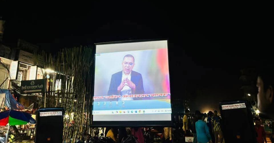 মিরসরাইয়ে তারেক রহমানের বিবিসি বাংলায় প্রকাশিত সাক্ষাৎকার প্রজেক্টরের মাধ্যমে দেখানো হয়।