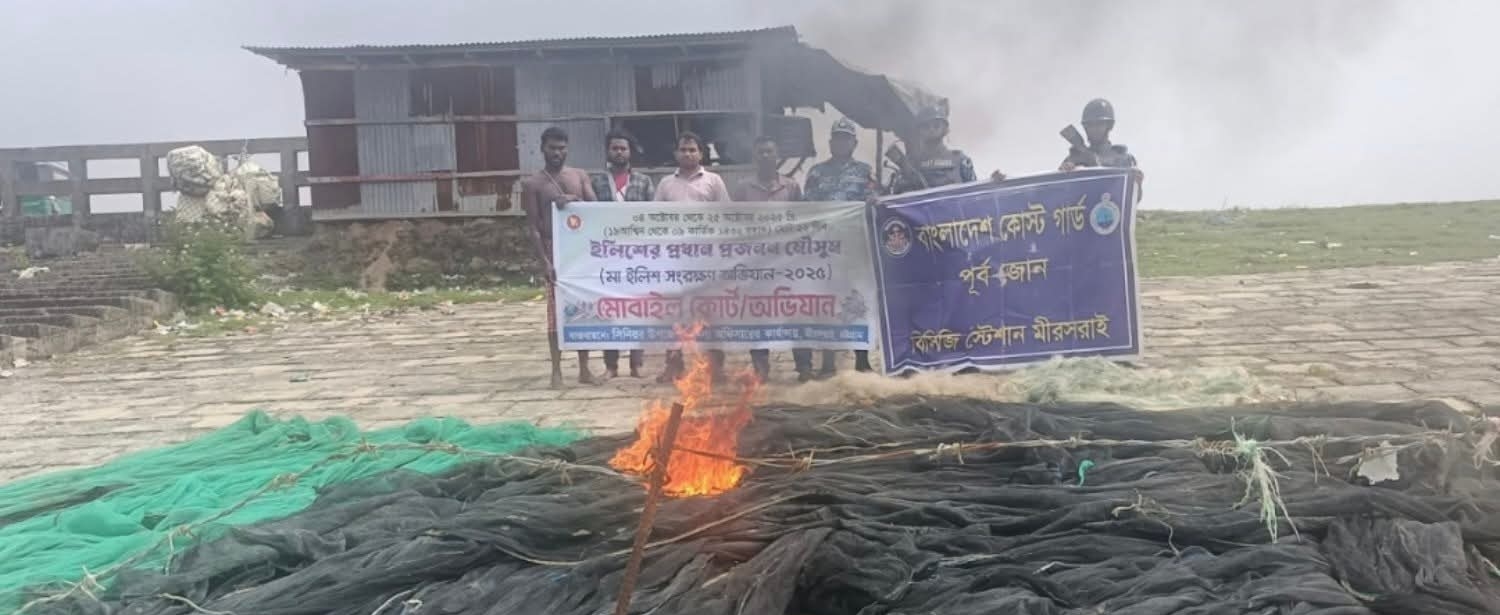 জালগুলো পুড়িয়ে ধ্বংস করা হয়। অভিযানে বাংলাদেশ কোস্টগার্ড মিরসরাই অংশগ্রহন করেন।