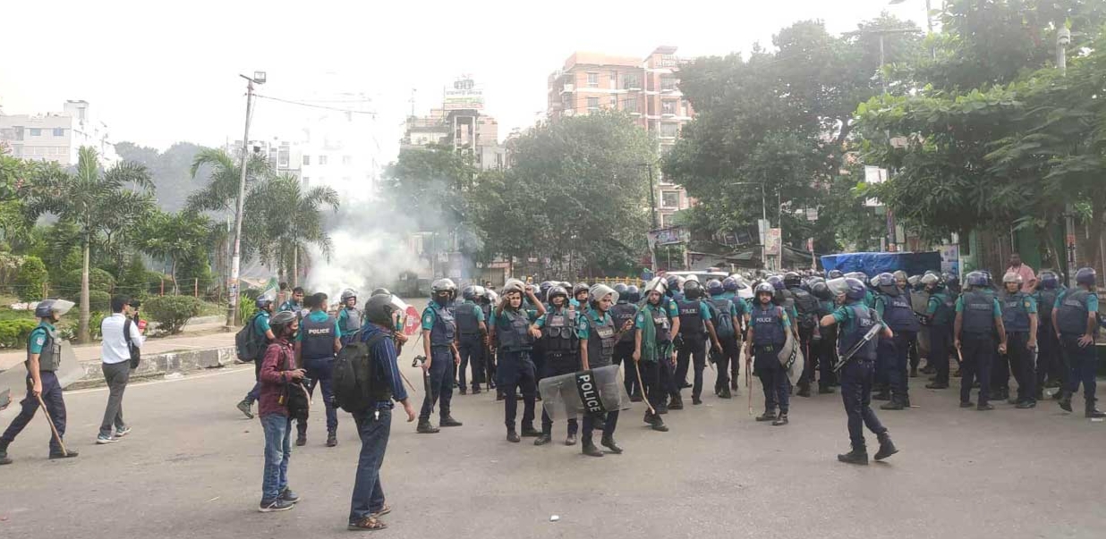 শুক্রবার (১৭ অক্টোবর) দুপুরে লাঠিচার্জ ও টিয়ারশেল নিক্ষেপ করে কথিত জুলাই যোদ্ধাদের বের করে দেওয়ার পর তারা খামারবাড়ি মোড়ে অবস্থান নেয়।
