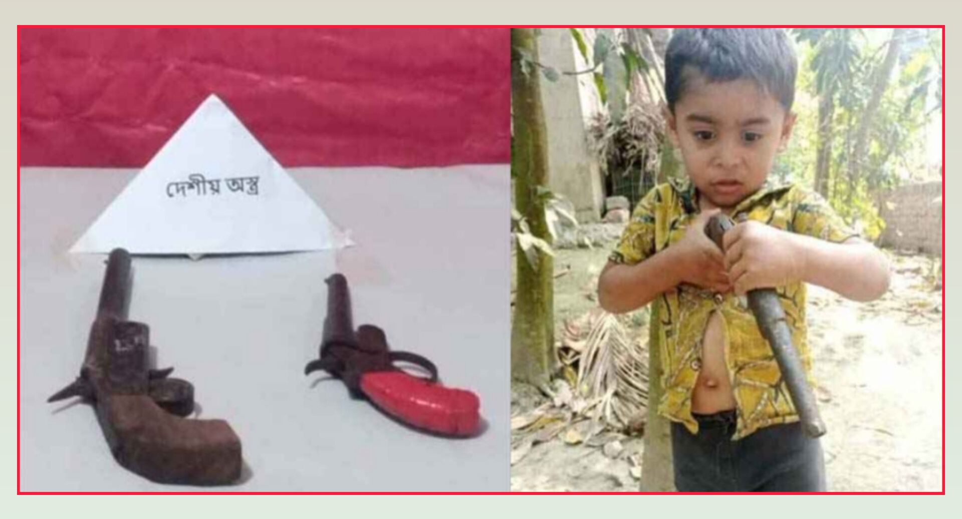 স্থানীয়রা জানায়, সেনাবাহিনীর মাধ্যমে উদ্ধার হওয়া অস্ত্রটি শিশুর হাতে প্রদর্শিত একই অস্ত্র। সামাজিক যোগাযোগ মাধ্যমে ভাইরাল হওয়ার পর এটি হাত বদল হয়ে বগাদানা ইউনিয়নে চলে যায়।