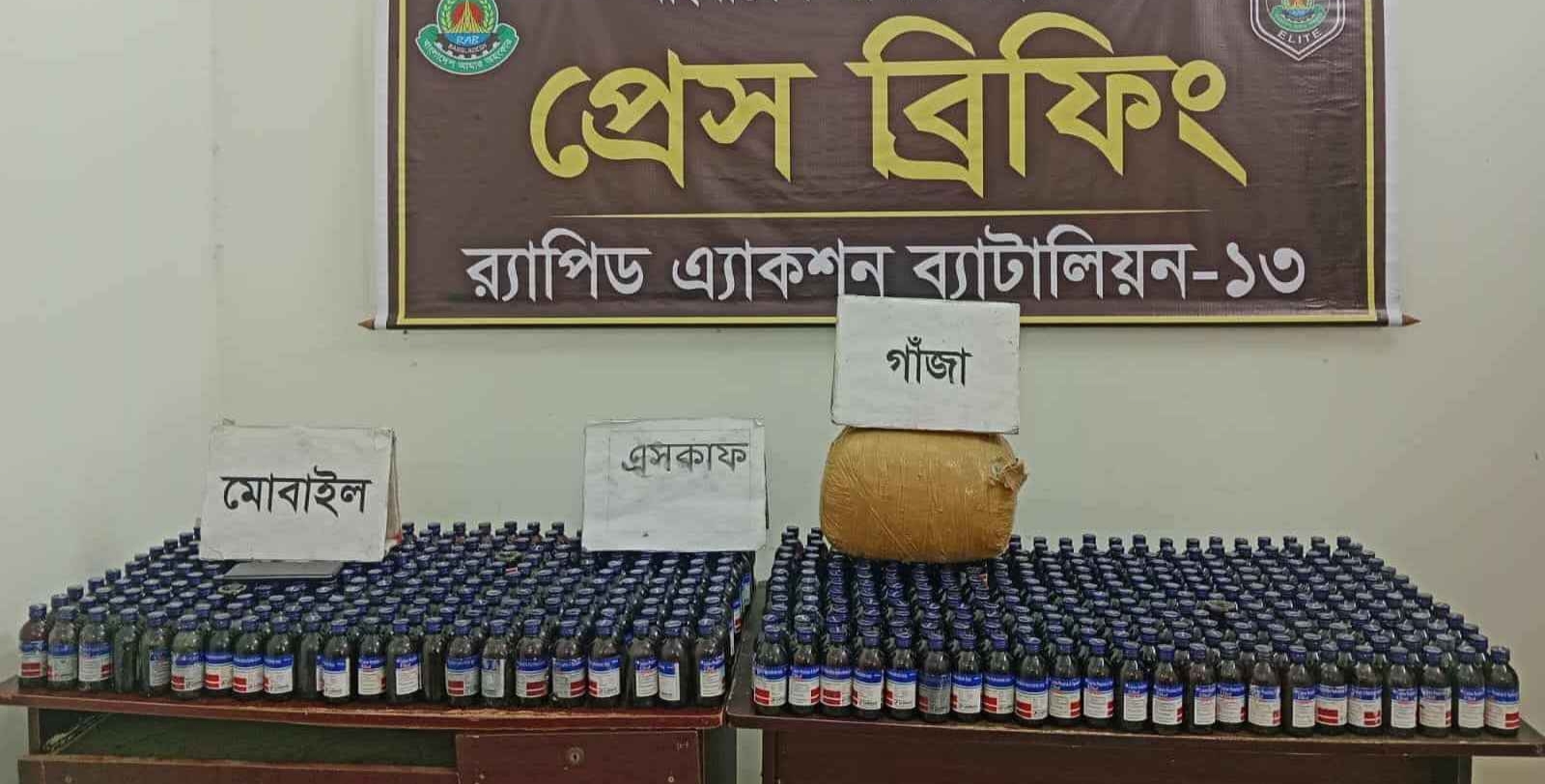 র‌্যাবের অভিযানে ৬৩৭ বোতল এস্কাফ ও গাঁজা উদ্ধার : গ্রেফতার ১