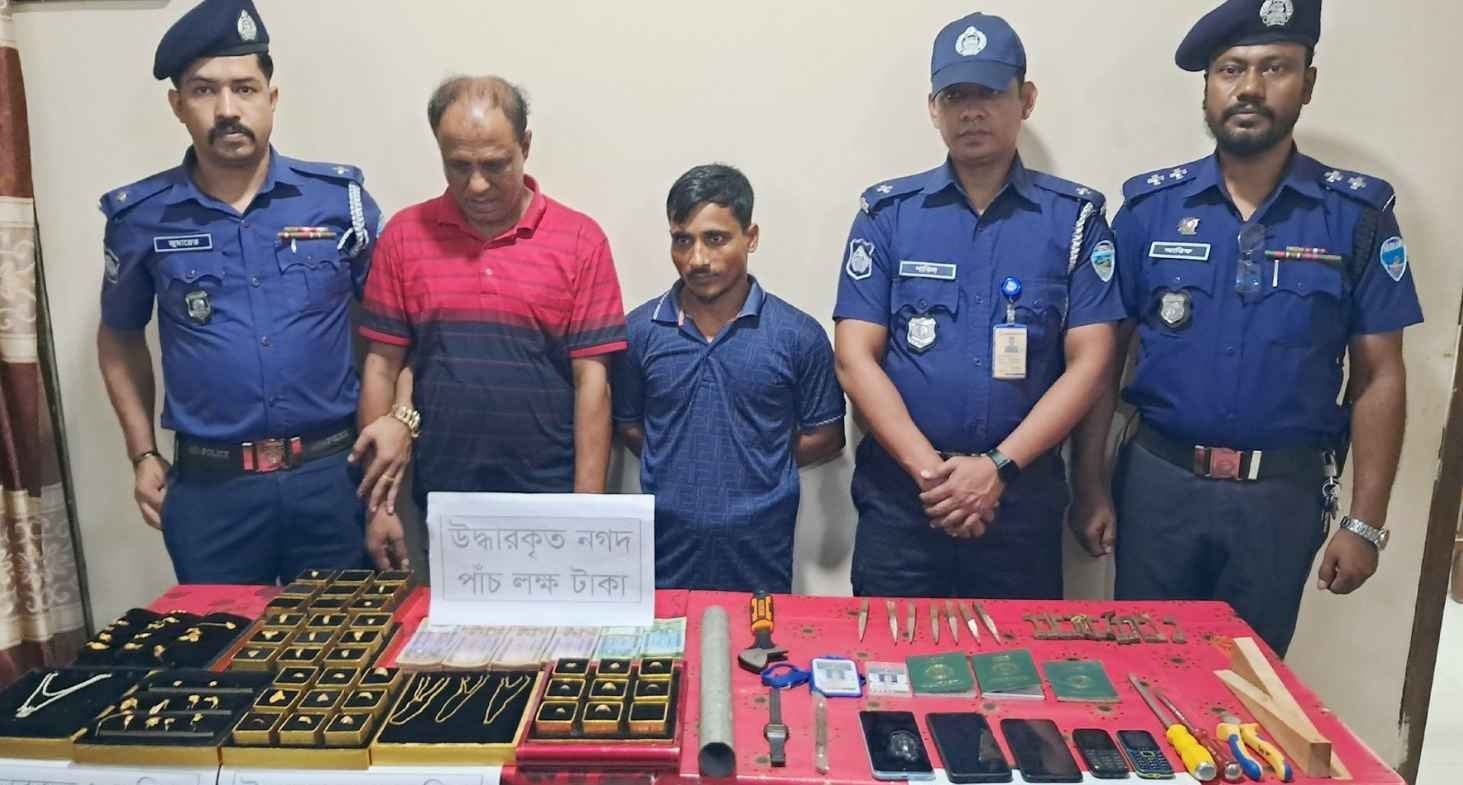 এ সময় তাদের কাছ থেকে ৭ ভরি স্বর্ণ ও নগদ ৫ লাখ টাকাসহ চুরির কাজে ব্যবহৃত সরঞ্জাম উদ্ধার করা হয়।