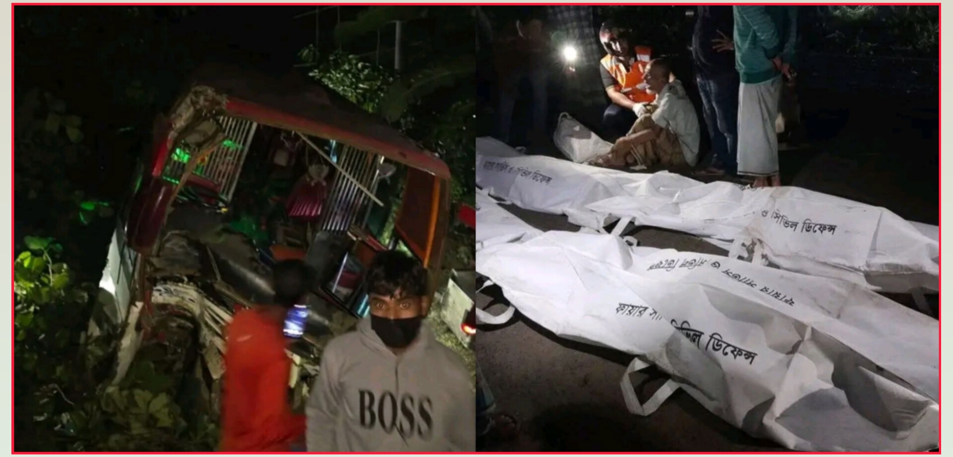 প্রত্যক্ষদর্শী মুমিন জানায়, চট্টগ্রামমুখী একটি বাস একটি মোটরসাইকেলকে বাঁচাতে গিয়ে নিয়ন্ত্রণ হারিয়ে ফেলে। এতে রাস্তার পাশে দাঁড়িয়ে থাকা একটি ডাম্প ট্রাককে ধাক্কা দেয়। এতে ঘটনাস্থলে অনেক হতাহতের ঘটনা ঘটে। ঘটনাস্থলে অনেকজন মারা গেছেন কিন্তু সুনির্দিষ্ট বলতে পারছি না।