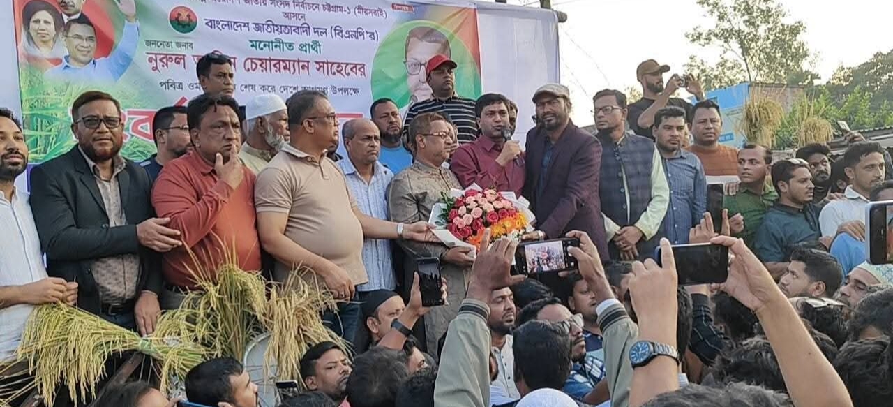 চট্টগ্রাম-১ (মিরসরাই) আসনে বিএনপি মনোনীত সংসদ সদস্য পদপ্রার্থী নুরুল আমিন চেয়ারম্যানের ধানের শীষের পক্ষে ঢাকা-চট্টগ্রাম মহাসড়কে মোটর সাইকেল শোভাযাত্রা শেষে বড়তাকিয়া বাজারে পথসভা অনুষ্ঠিত হয়।