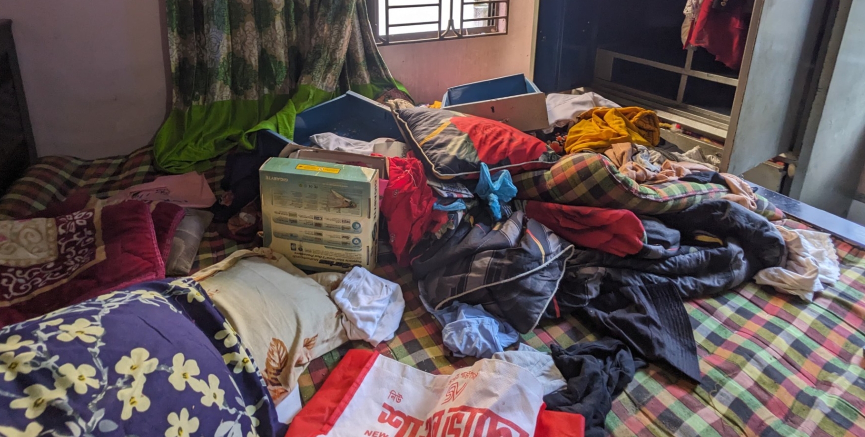 তিনি আরও বলেন, ডাকাতরা আমাকে গামছা দিয়ে চোখ, হাত-পা বেধে ফেলে এবং মহিলাদের ঘাড়ে দেশীয় অস্ত্র ধরে রাখে এবং আমার ছোট বাচ্চাকে মেরে ফেলার হুমকি দেয়। এসময় আমার স্ত্রী থেকে আলমারির চাবি, তালা খুলে প্রায় ৬ ভরি স্বর্ণালংকার, নগদ ১৫ হাজার টাকা ও ৩টি মুঠোফোন নিয়ে যায়৷